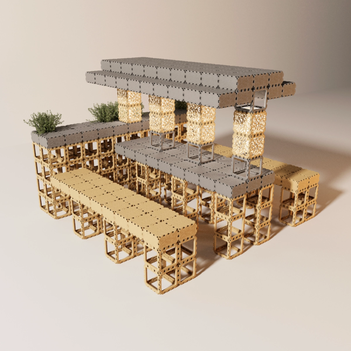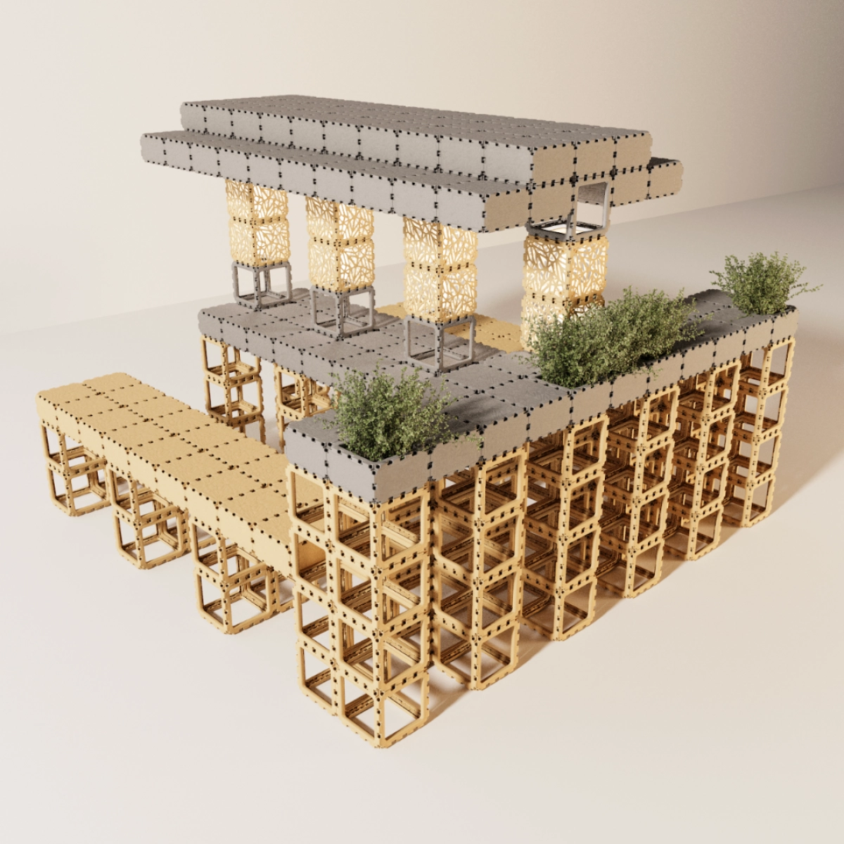 Konstrukcja jest stabilna, nie wymaga użycia narzędzi i jest w pełni modułowa: można ją przedłużyć, zmienić jej kształt lub dostosować do dowolnego wydarzenia lub wnętrza. Idealny do kawiarni, tarasów, hoteli, otwartych biur lub tymczasowych konfiguracji wydarzeń. Czas montażu 5-7 godzin przez dwie osoby.