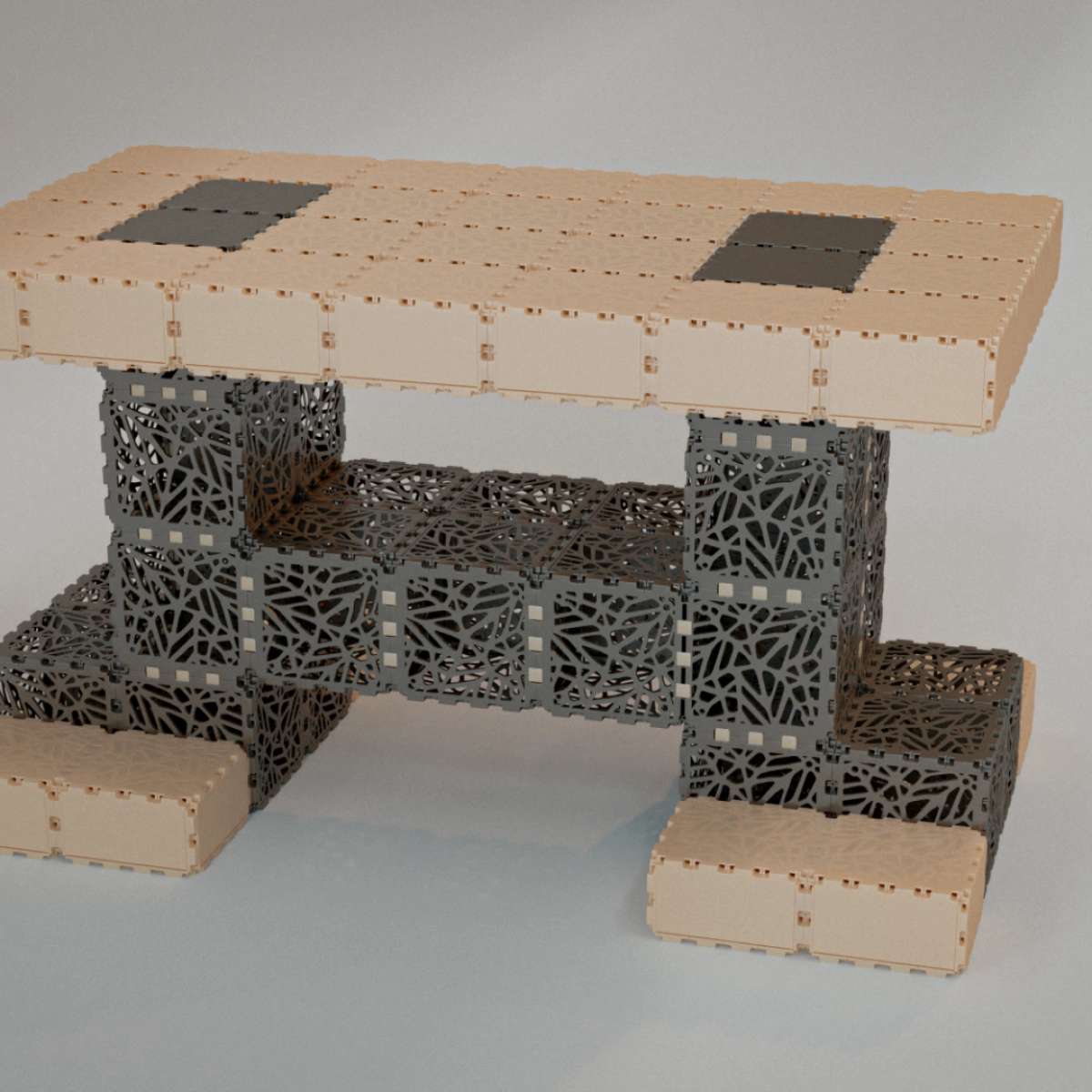 Modułowy stół do jadalni z wbudowanym schowkiem i sekcjami do sadzenia. Otwarta konstrukcja sześcianu pozwala na wygodne umieszczenie ziół, owoców lub akcesoriów kuchennych, zmieniając stół zarówno w funkcjonalny, jak i dekoracyjny element centralny. Nadaje się do użytku wewnątrz i na zewnątrz. Czas montażu - około 1 godziny.