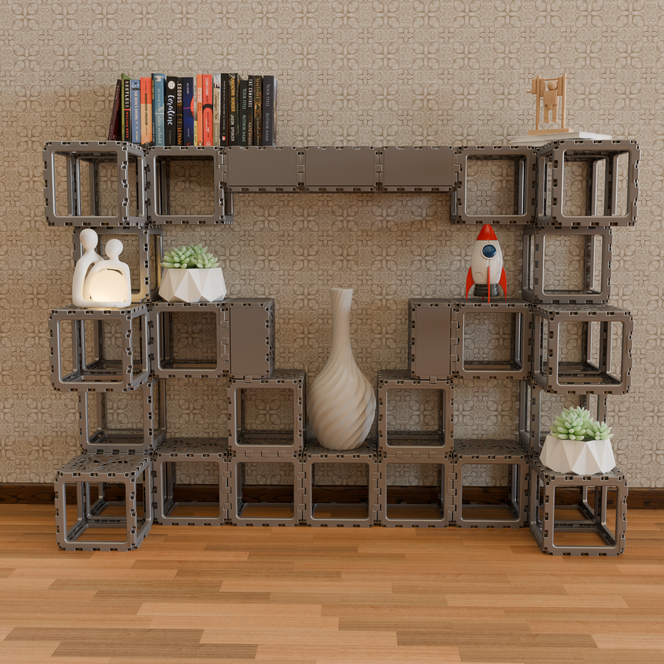Ponieważ każda kostka, profil i panel są zgodne z jedną siatką, umożliwiając zmianę, przebudowę i rozbudowę mebli w dowolnym momencie.