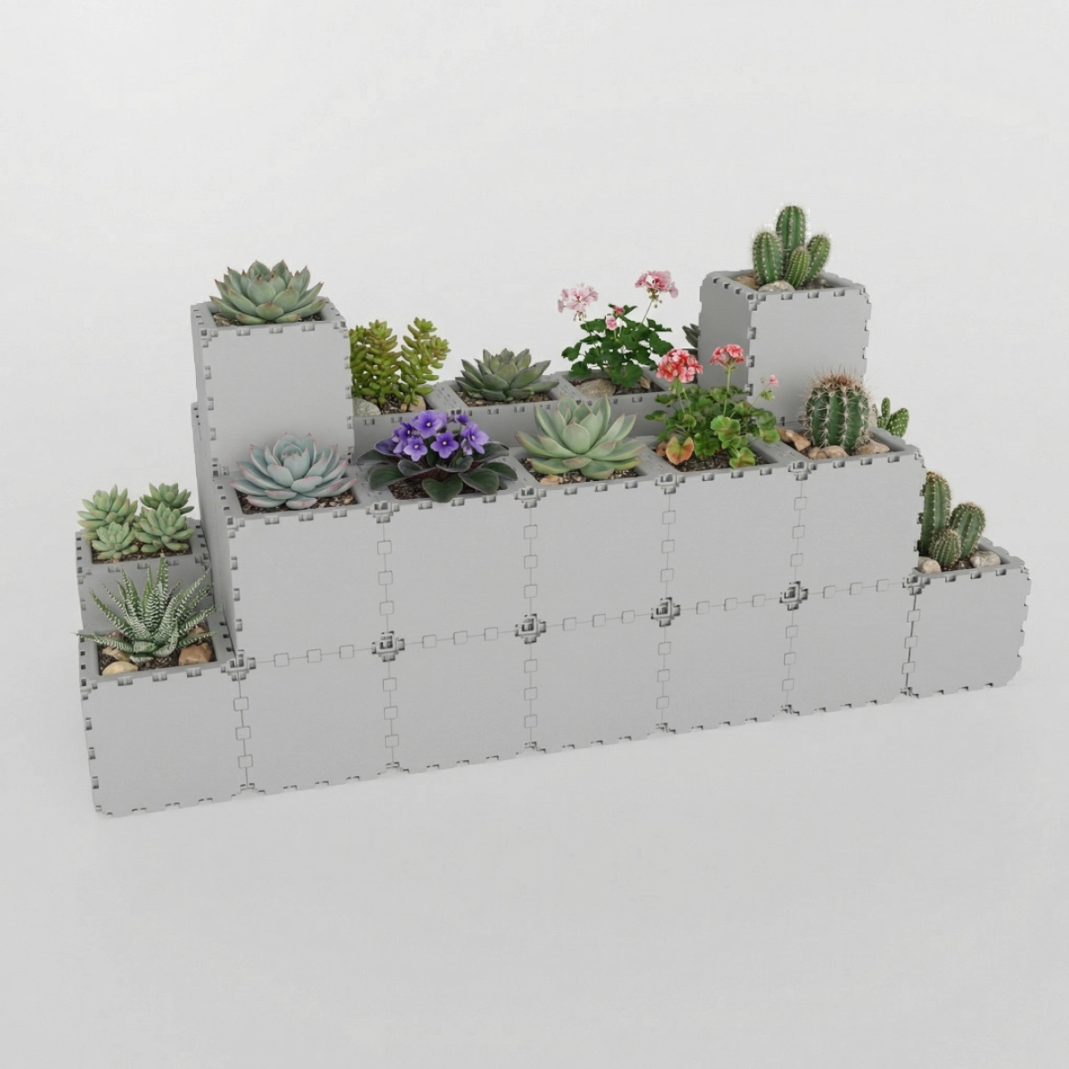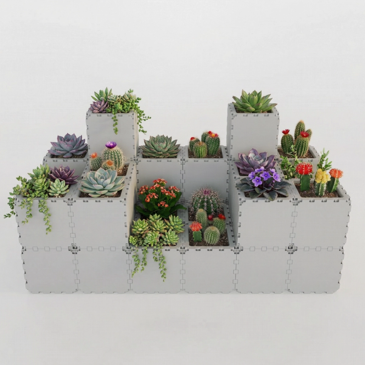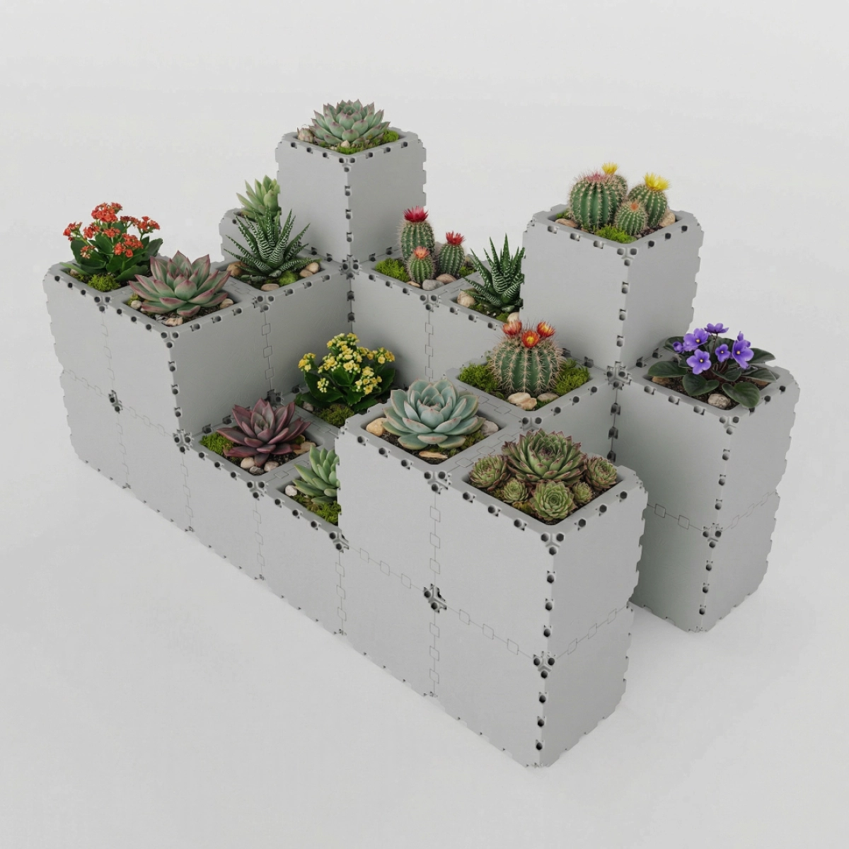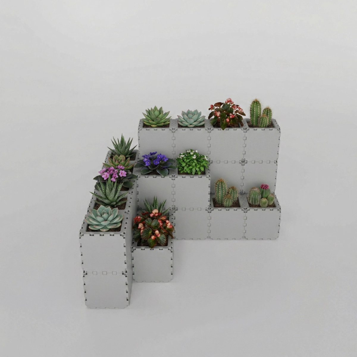 A modular set of 30 mini cubiks with 4 assembly options, designed for creating flexible and expressive planter compositions. The modules can be arranged in different layouts to suit various interiors and spaces. Perfect for succulents, cacti, herbs, and other small plants. Easy to reconfigure, expand, and adapt to your needs