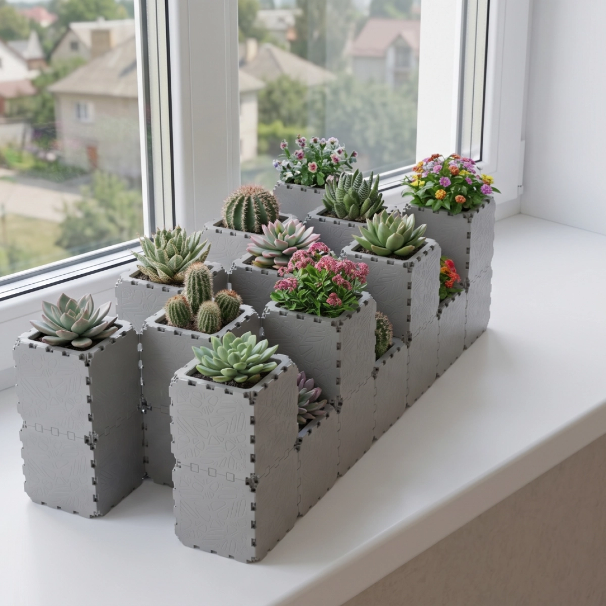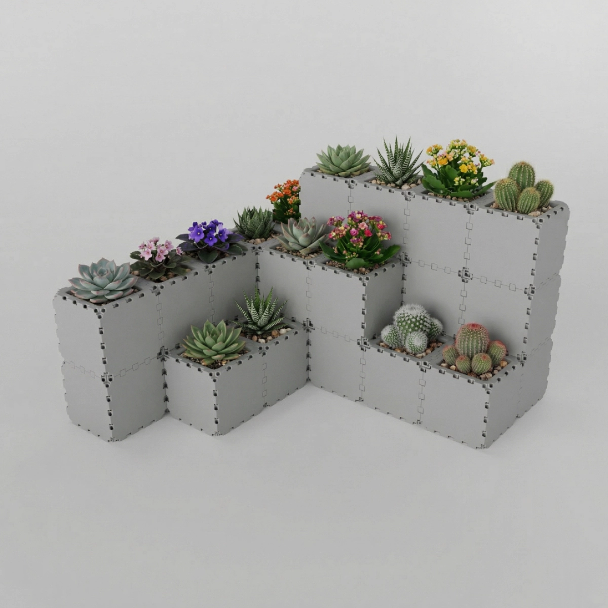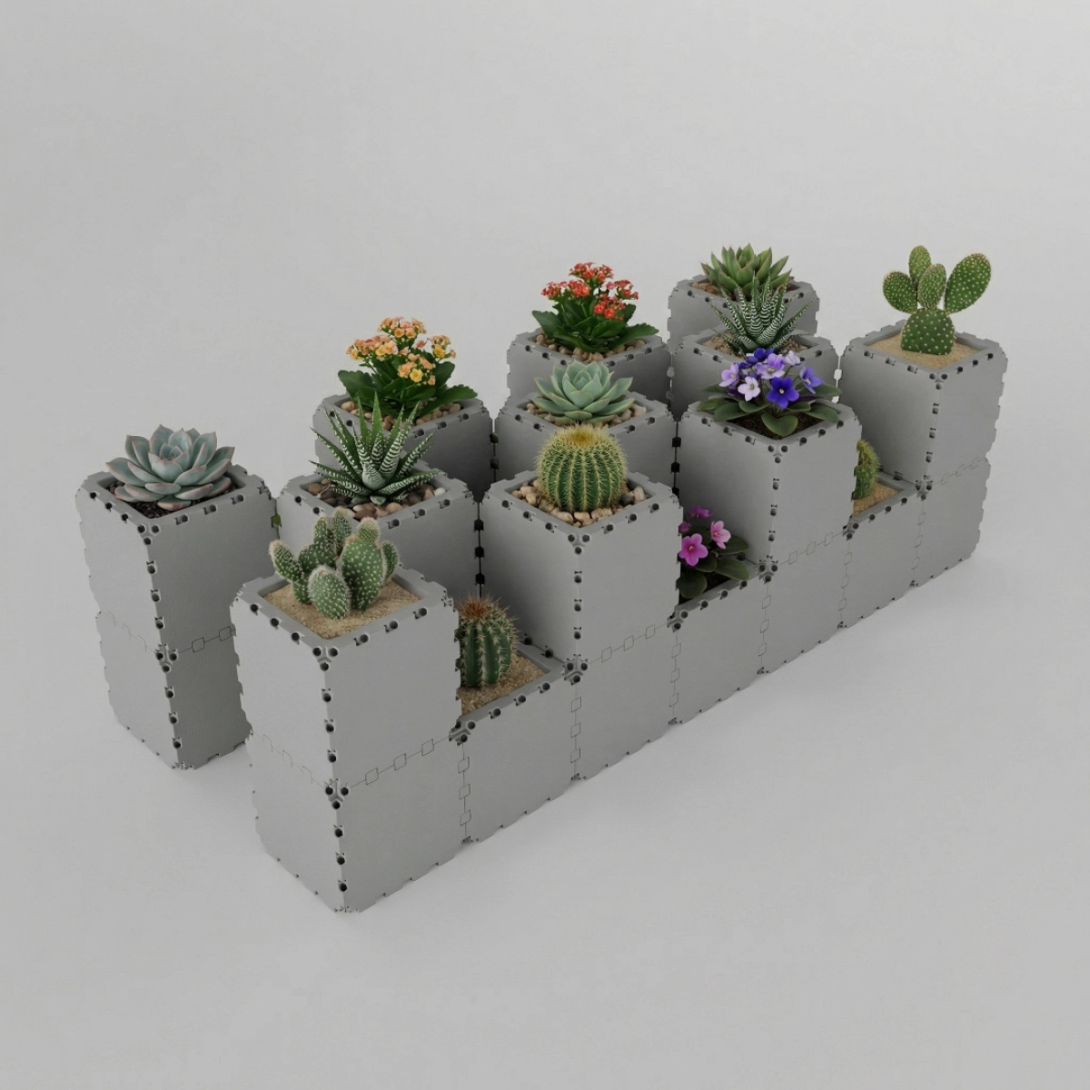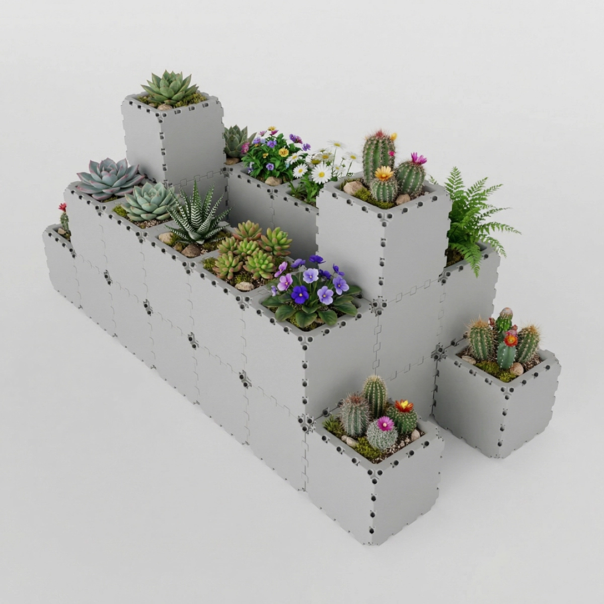 A modular set of 30 mini cubiks with 4 assembly options, designed for creating flexible and expressive planter compositions. The modules can be arranged in different layouts to suit various interiors and spaces. Perfect for succulents, cacti, herbs, and other small plants. Easy to reconfigure, expand, and adapt to your needs