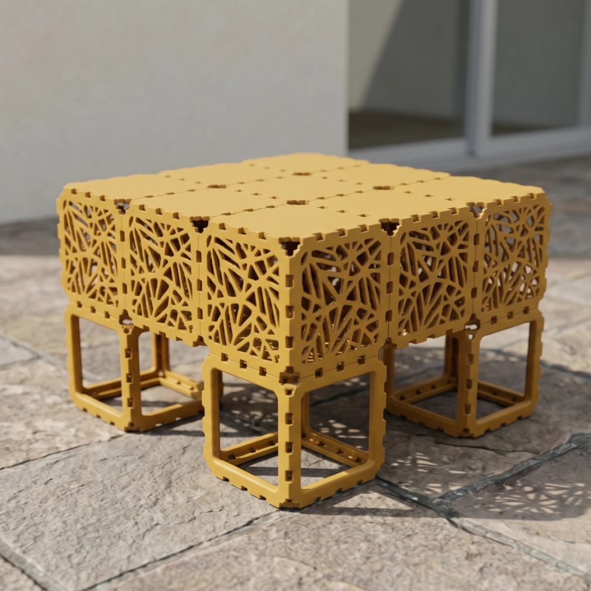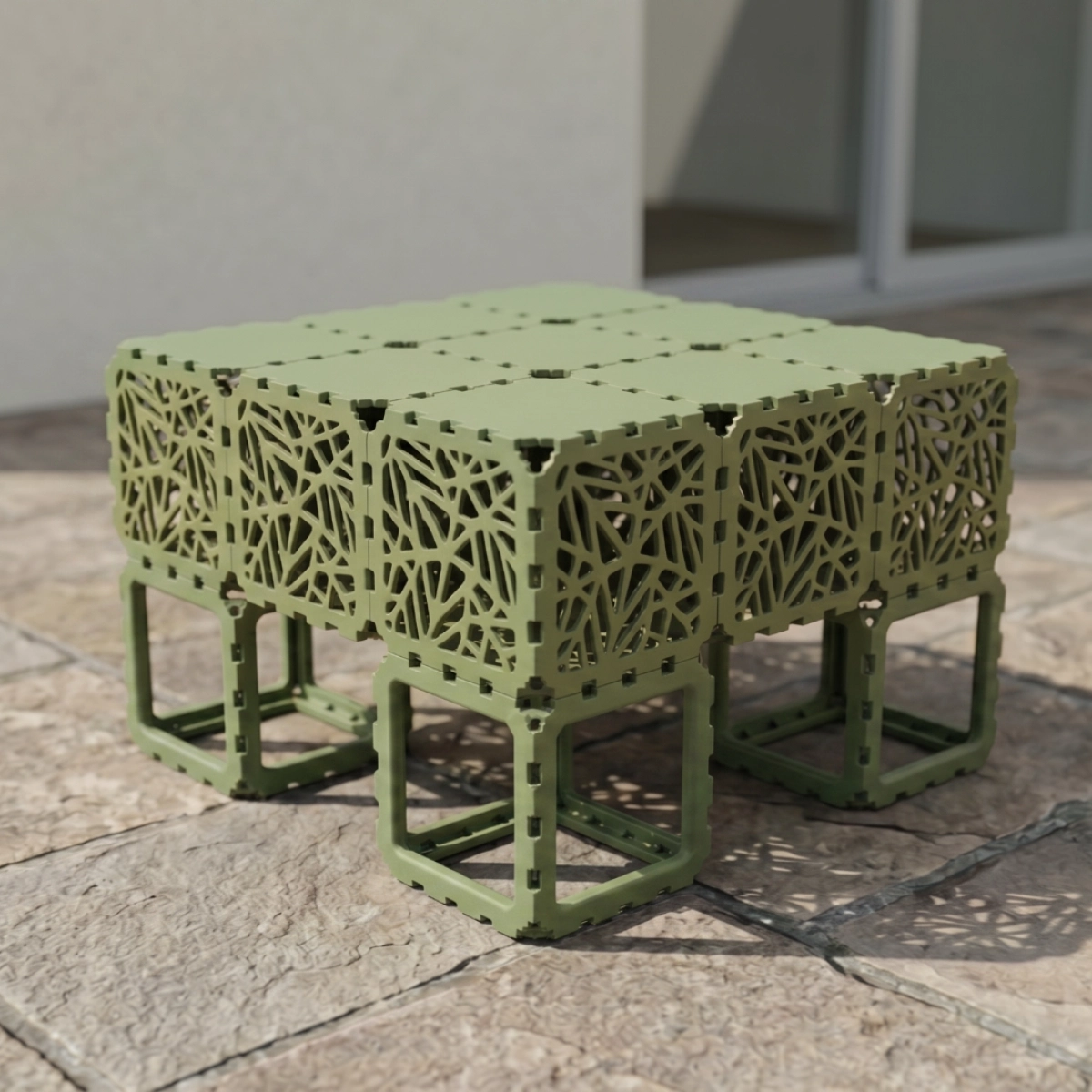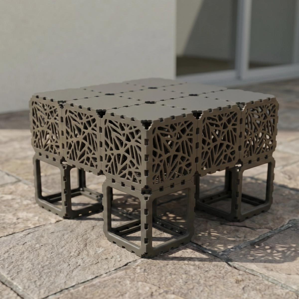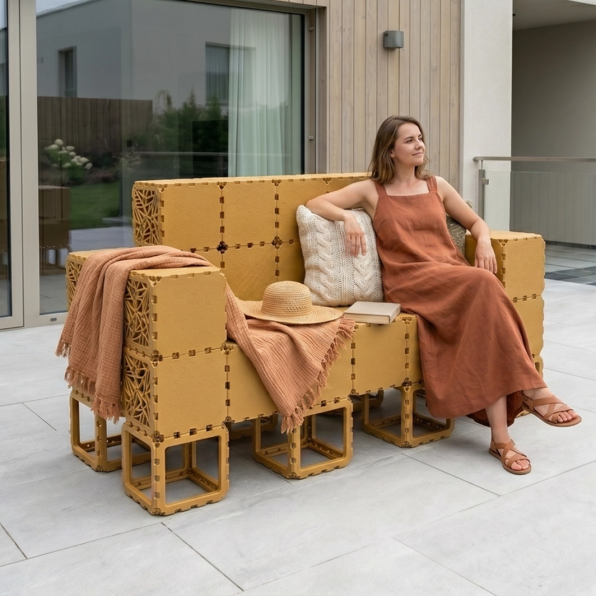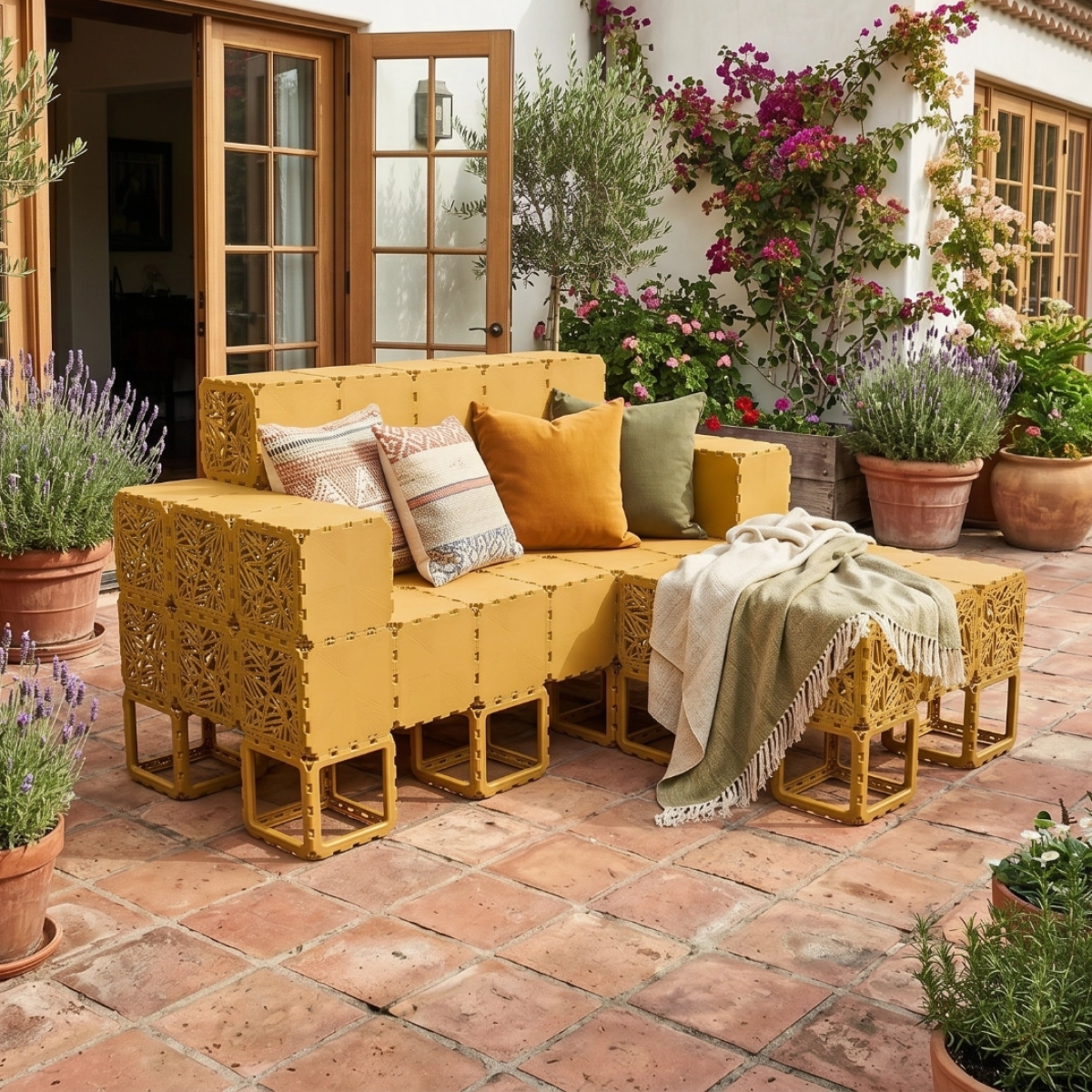 A modular outdoor sofa system built from Cubik elements, designed for flexible configurations and modern spaces.