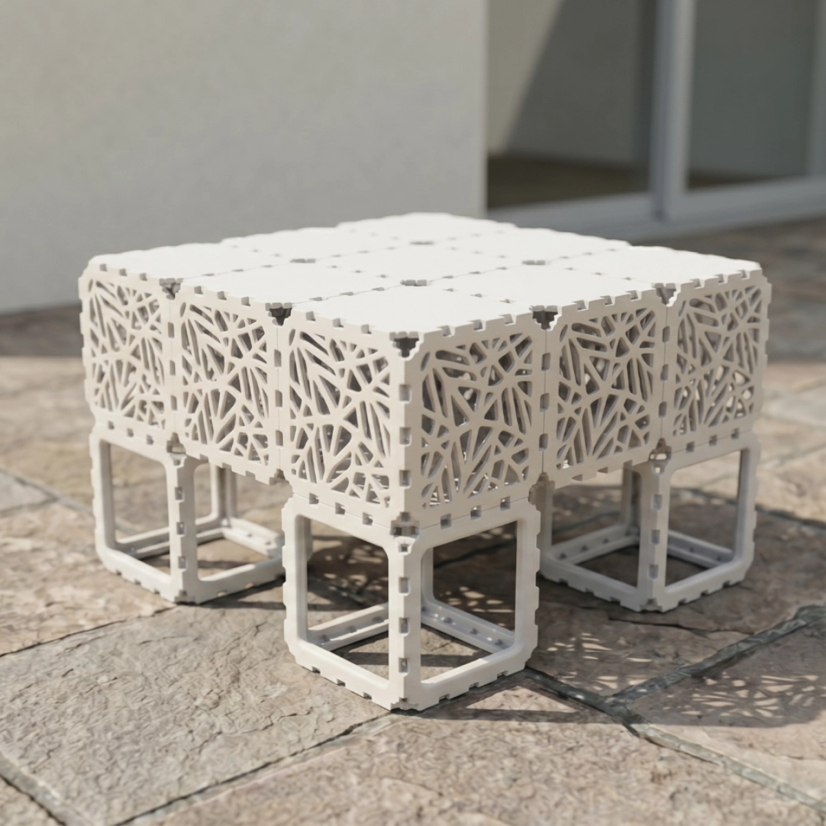 Durable plastic construction is resistant to moisture and UV exposure, making it suitable for both indoor and outdoor use. The structural geometry ensures stability while keeping the overall weight optimized.