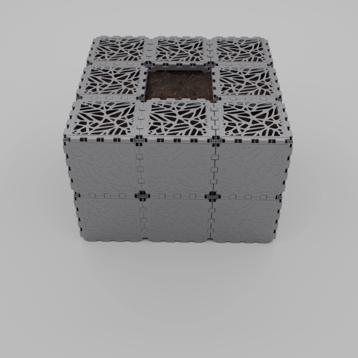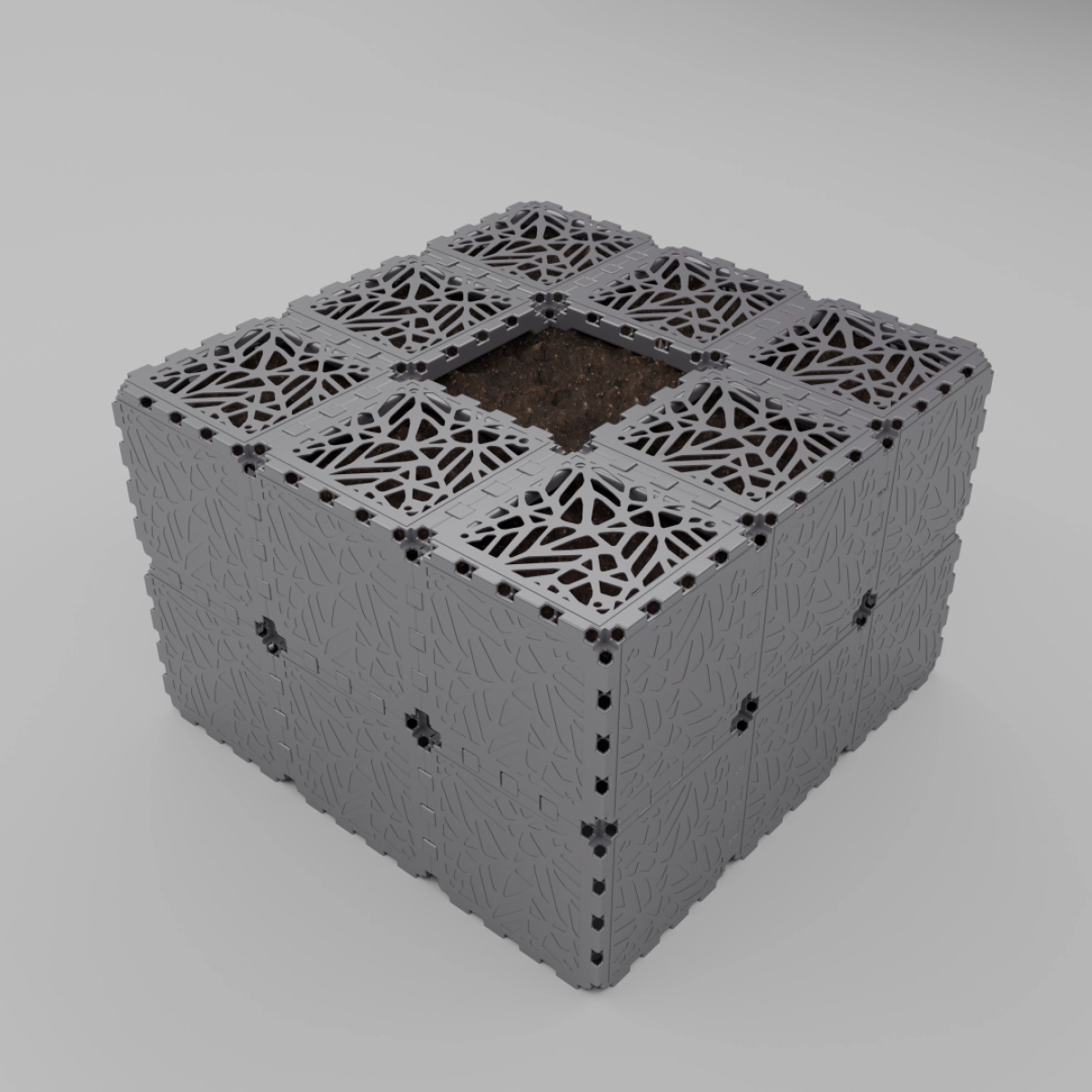 Wewnętrzna wnęka mieści około 180 litrów gleby, odpowiedniej dla średnich i dużych roślin ozdobnych lub małych drzew.