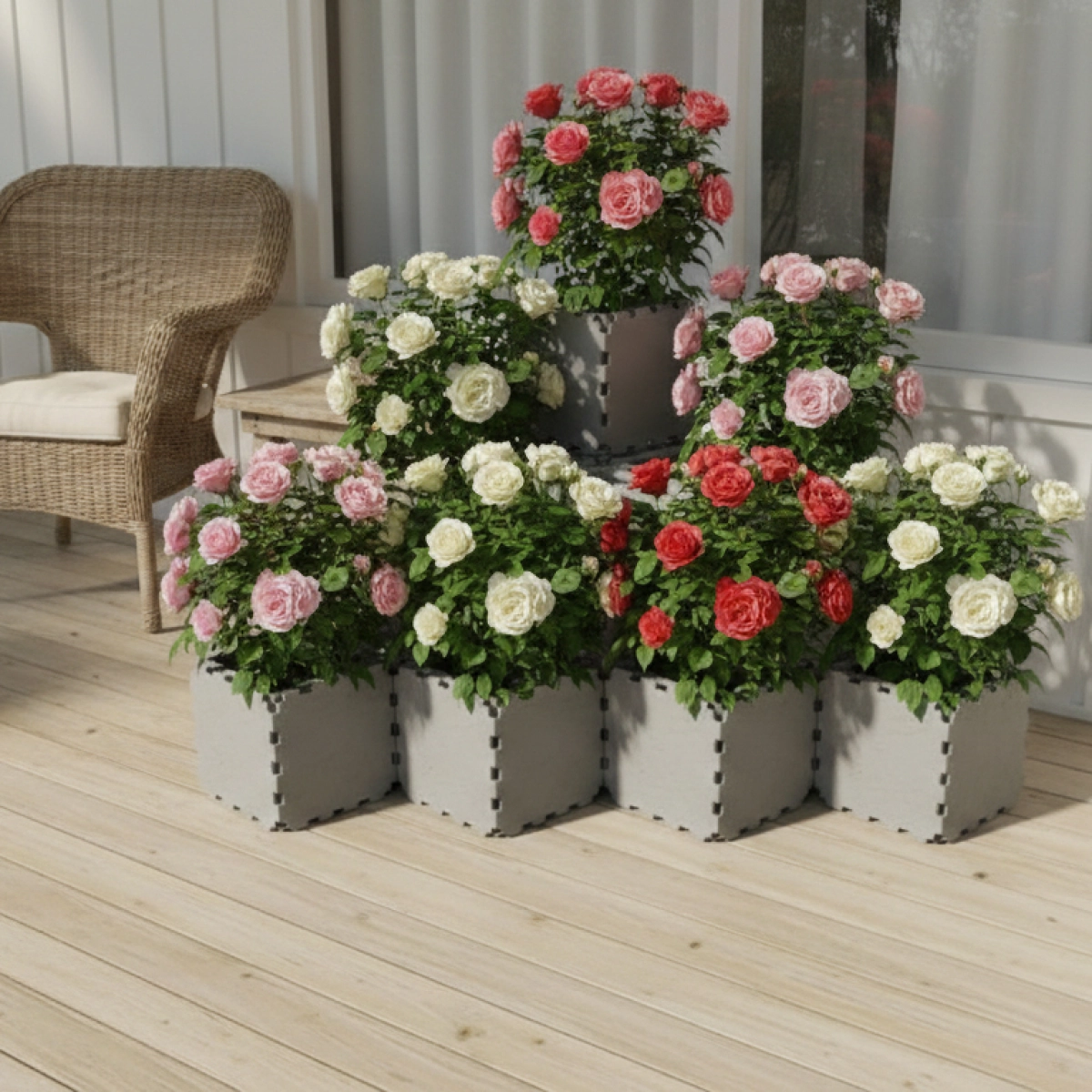 Wszystkie inne kostki do sadzenia są wykonane z pustych paneli VOID. Taka konstrukcja zapewnia korzeniom roślin więcej miejsca do naturalnego wzrostu. Otwarta struktura wewnętrzna pozwala systemowi korzeniowemu rozprzestrzeniać się i przeplatać przez puste przestrzenie VOID, co jest szczególnie korzystne dla декоративные roślin domowych.