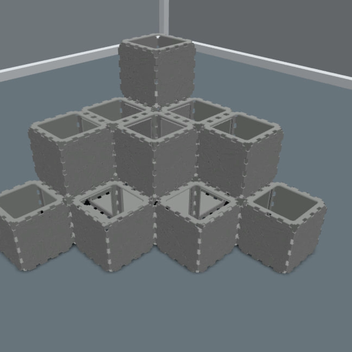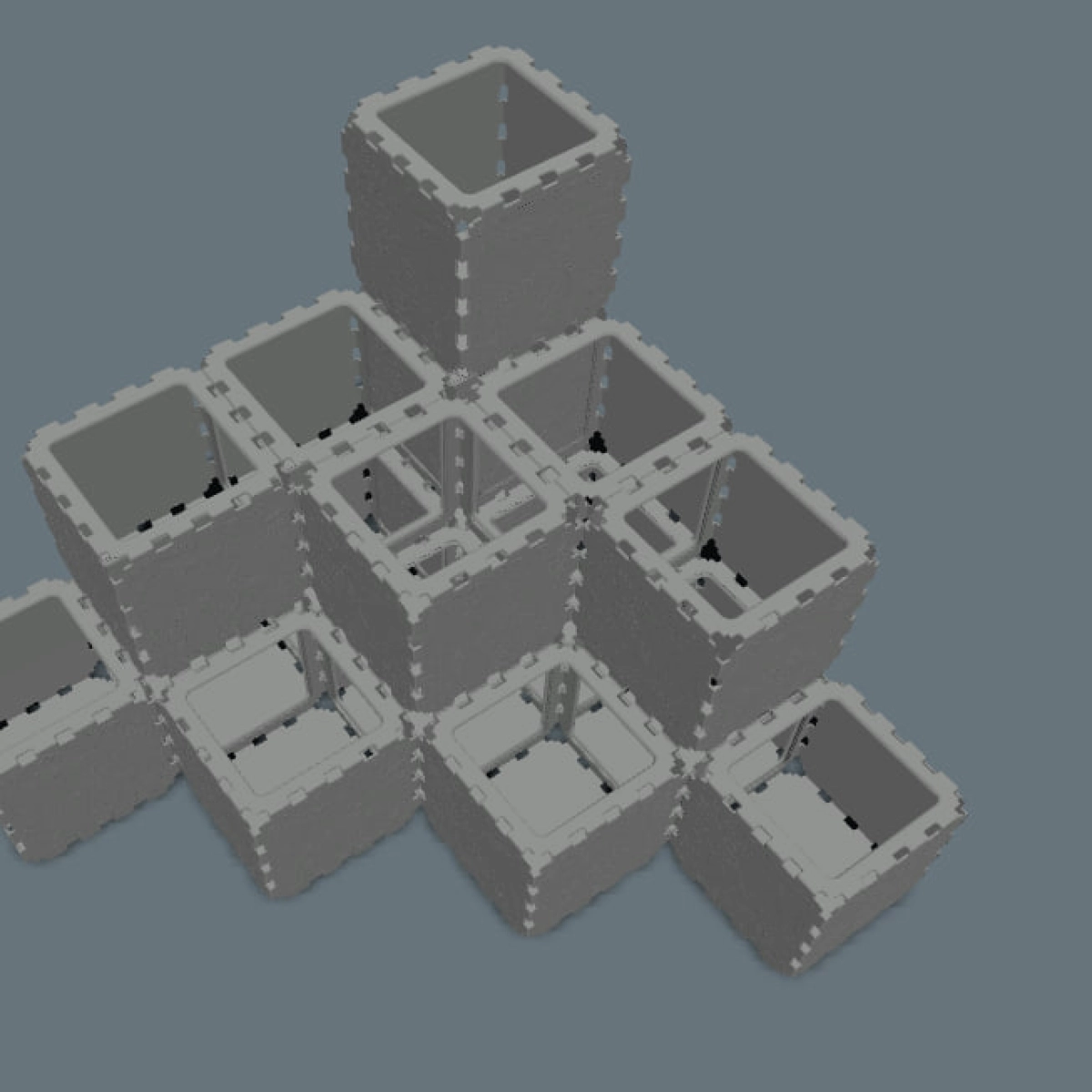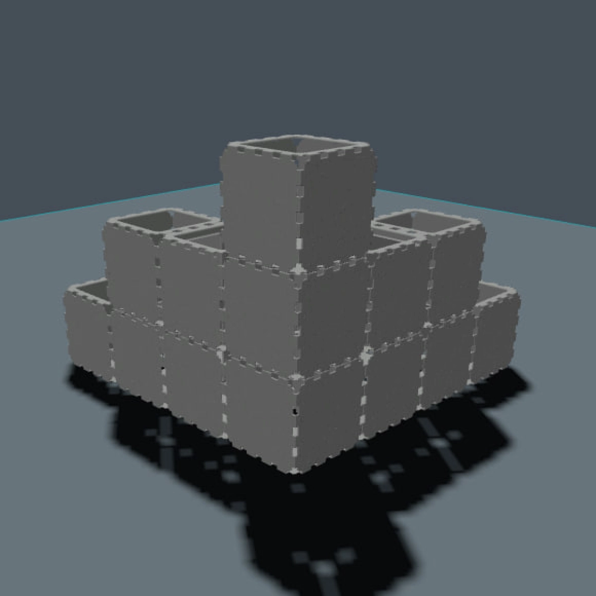 Najwyższa kolumna centralna, wykonana z 3 ułożonych w stos sześcianów, jest zbudowana z solidnych paneli ZEN. Ten wzmocniony rdzeń wzmacnia całą konstrukcję, poprawia stabilność, a także pomaga zmniejszyć ilość gleby potrzebnej wewnątrz sadzarki.