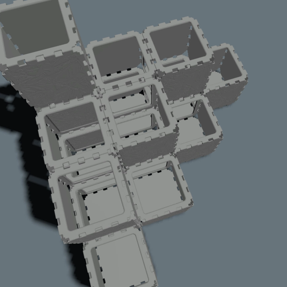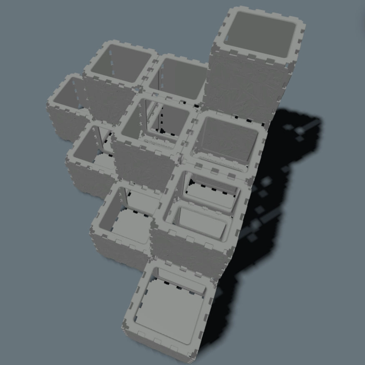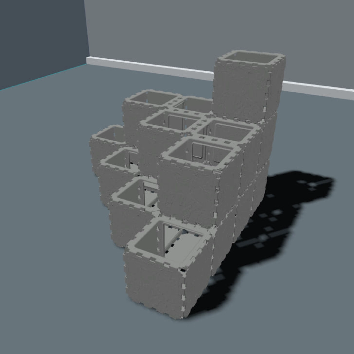 Najwyższa kolumna centralna, wykonana z 3 ułożonych w stos sześcianów, jest zbudowana z solidnych paneli ZEN. Ten wzmocniony rdzeń wzmacnia całą konstrukcję, poprawia stabilność, a także pomaga zmniejszyć ilość gleby potrzebnej wewnątrz sadzarki.