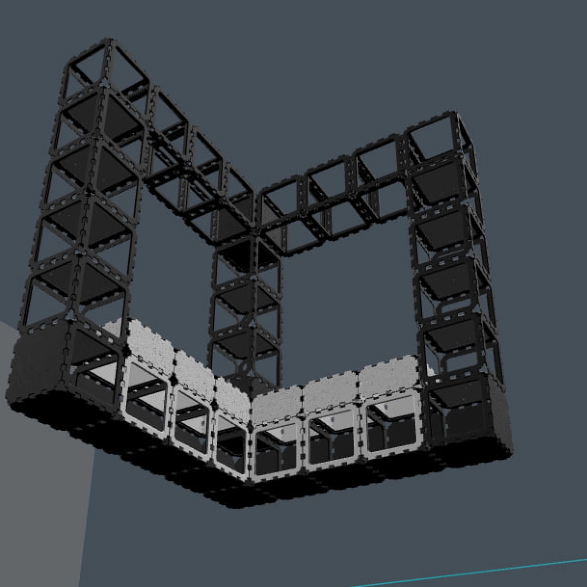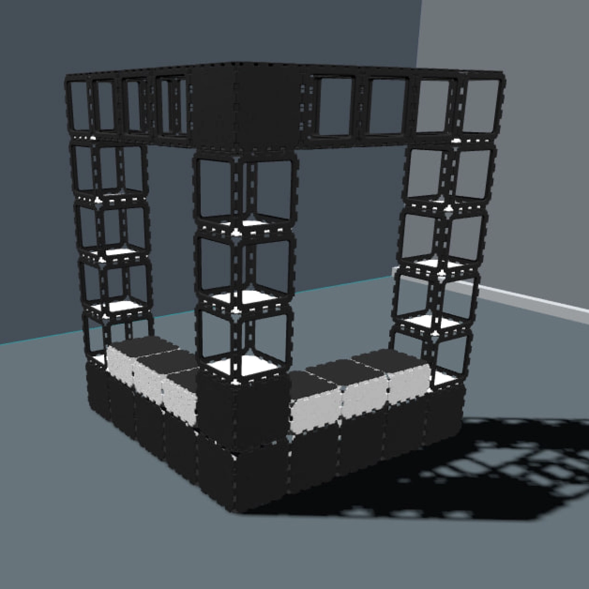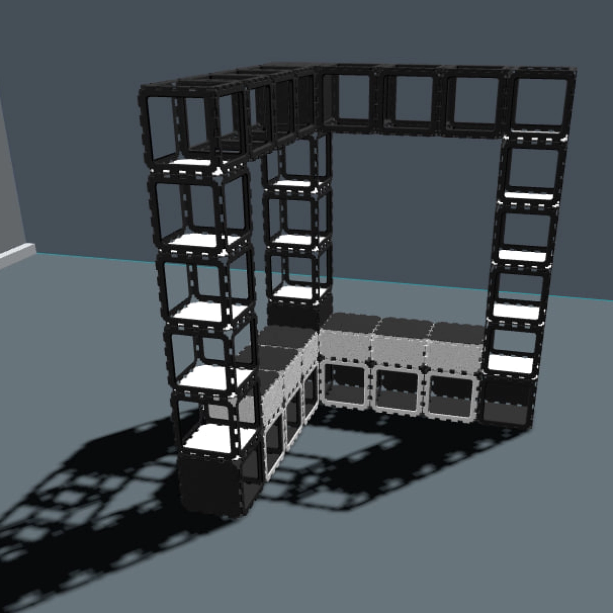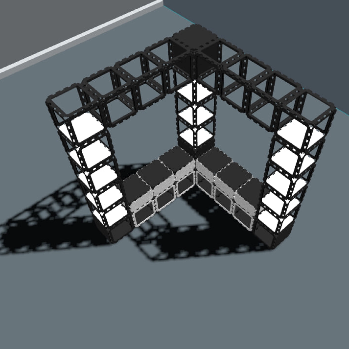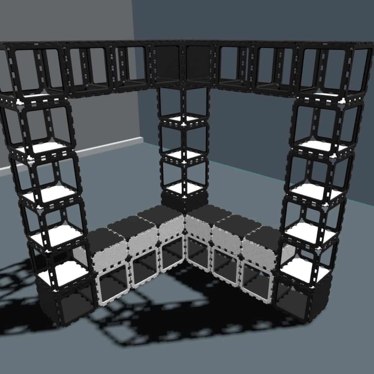 Ta modułowa szafa narożna jest zbudowana z wytrzymałych kostek Cubik.one, tworząc mocne i efektowne wizualnie rozwiązanie do przechowywania w nowoczesnych przedpokojach. Otwarta konstrukcja pozwala na swobodne wieszanie kurtek, podczas gdy górne półki zapewniają miejsce na rośliny, książki i osobiste akcesoria.
