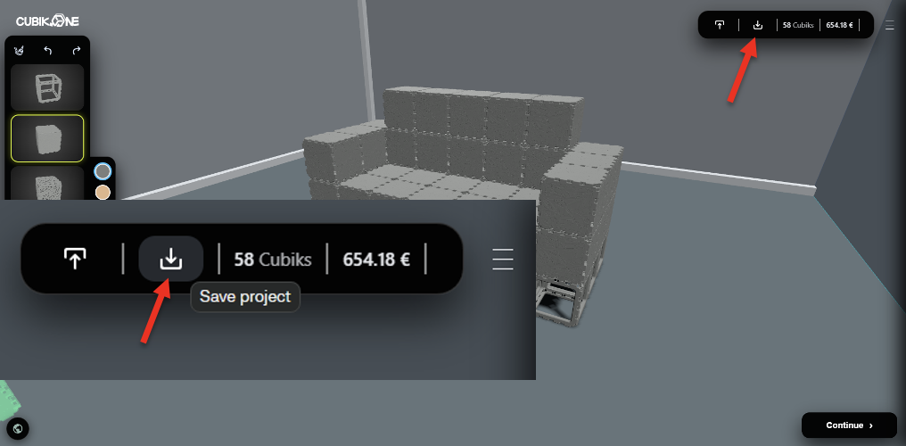 Aby utworzyć render, najpierw zbuduj obiekt w 3D Builder na Cubik.one i zapisz projekt. Następnie zrób 3 zrzuty ekranu pod różnymi kątami i prześlij zapisany projekt na swoje konto.